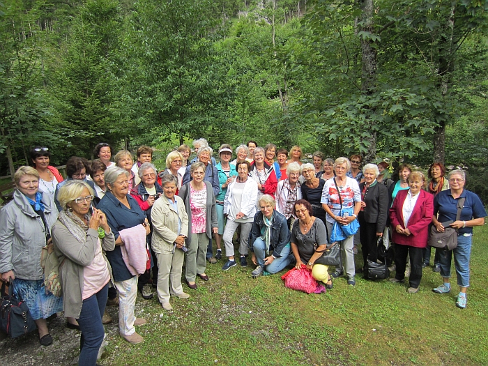 In Eisenerz trafen wir uns mit Tanzleiterin Gertrude Lagelstorfer, die den Tag in Eisenerz für uns organisiert hatte. Sie zeigte uns am Leopoldsteinersee den von ihr gestalteten Kneipp-Parcours, worauf ein Teil der Teilnehmerinnen diesen als Aufwärmübung für den Tanznachmittag ausprobierten.