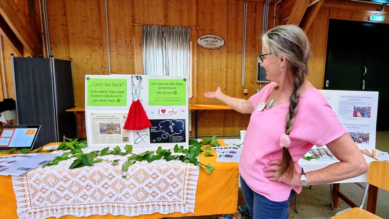 Gleich nach der Eröffnung durch die politische Prominenz erfreuten 16 Tänzer: innen unter der Leitung von Margareta Dieß das Publikum mit zwei schönen Tänzen. Nach dem ersten Vortrag wurden die rund 80 Gäste von Ann mit einem Tanz im Sitzen, dem „Schuhplattler“ aktiviert 😉 Wieder einen Vortrag später tanzte die Gruppe von Margareta bei ihrem zweiten Auftritt noch einen Block und einen Square. Am Nachmittag gabs dann nochmals für Alle zum Mitmachen einen lustigen Tanz im Sitzen!