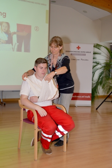 Der Nachmittag war der Ersten Hilfe gewidmet, den Thomas Kühberger vom Roten Kreuz Melk sehr kompetent