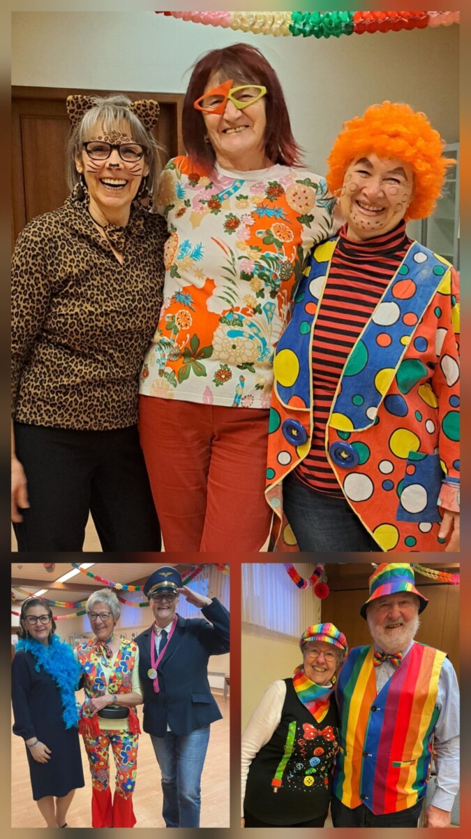 Wir waren ein buntes lustiges Grüppchen, das die Faschingstanzstunde ausgelassen „vertanzte“. Varianten wie Tänze mit „falschem“ Fuß beginnen, innerhalb des Tanzes unvermittelt auf anderen Fuß wechseln oder beim Paartanz die Damenposition mit der Herrenposition tauschen, sorgte für erheiternde Konzentration. Dass damit unser „echter“ Mann Josef die Frauenposition tanzen „musste“ war eine gut gelungene Herausforderung! Ausklingen ließen wir den Abend dann noch in einem nahegelegenen Lokal und wir waren uns einig: wir hatten eine unterhaltsame lustige gemeinsame Zeit!