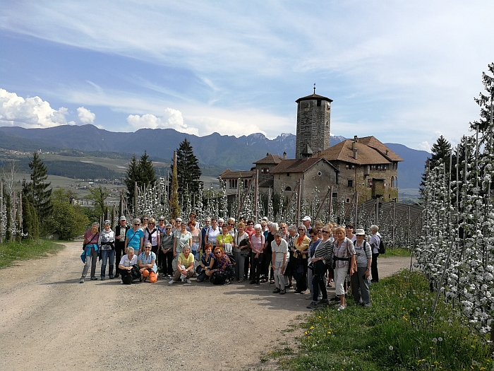 Für 54 tanzbegeisterte Tänzerinnen und Tänzer ging es am Sonntag Vormittag per Bus vom Unterinntal über Innsbruck bis zu unserem Ziel Mezzana im Val di Sole. Unser erster Ausflug führte uns aus dem Val di Sole ins Val di Non, vorbei an blühenden Apfelplantagen, über enge Straßen, verwinkelte Gassen und Kurven hin zur Romedio-Wallfahrtskirche. Weiter ging es dann zum Smeraldo-Stausee und nach dem Mittagessen zum Castel Valer, welches in wunderschöner Panoramalage zwischen Apfelbäumen und Weinreben gelegen uns mit seinem 40 m hohen achteckigen Turm willkommen hieß. Nach dem Abendessen wurde unter der Leitung der bestens vorbereiteten Tanzleiterinnen Regina Steinegger und Renate Tobitsch getanzt und gelacht. Am nächsten Tag fuhren wir mit der elektrifizierten Schmalspurbahn nach Trient und weiter ins Castello del Buonconsiglio. Zurück ging es dann per Bus, in dem wir uns ausrasten konnten, um für das Tanzen wieder gerüstet zu sein.