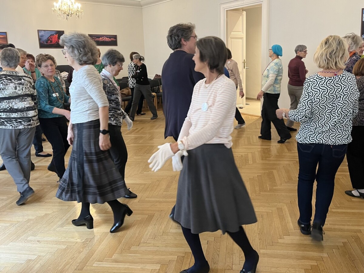 Round mit Karin Am Samstag, den 15. November 2025 füllte sich der Festsaal des Alpenvereines in der Walfischgasse mit einer fröhlichen Schar von über 30 Tanzleiterinnen und geübten TänzerInnen aus Wien ...