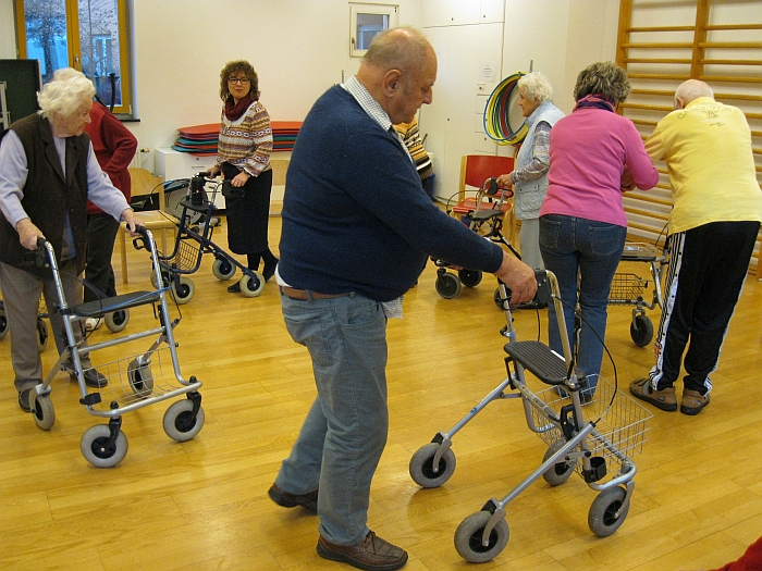 Am 12.12.2016 war es endlich soweit. Im Wohnheim Reichenau in Innsbruck nahmen vier Damen und zwei Herren im Alter zwischen 75 und 94 Jahren an der Schnupper-Tanzstunde „Tanzen mit dem Rollator“ teil. Die Schritte wurden so angepasst, dass alle mittanzen konnten. Es wurden immer wieder Pausen im Sitzen eingebaut, welche mit einem kleinen „Schlückerl“ oder einem Gedicht oder einem Lied ausgefüllt waren.