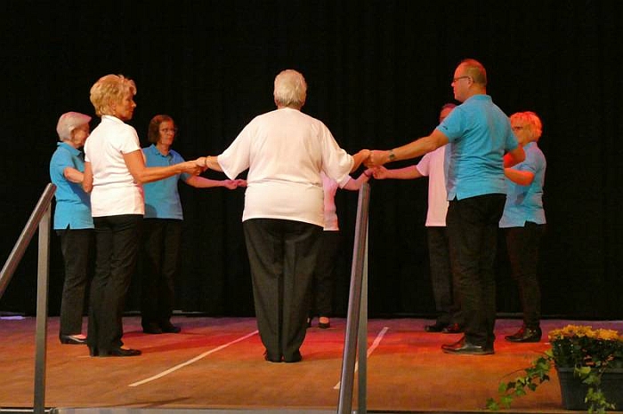 Die Tanzgruppe bewegte sich zum Operetten Medley und zur Allgemeinen Francaise Tour 1. Besonders beeindruckend war das Farbkonzept, das die Tänzerinnen und Tänzer mit den verschiedenen Figuren erstellten.