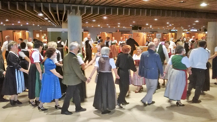 Die Tanzleiterinnen Marianne Kamleitner (Fachwart für Seniorentanz beim Seniorenbund OÖ) und Dr. Isabella Roth (Vorsitzendestellertreterin LVOÖ) luden die Ballgäste zu Mitmachtänzen ein. Die beiden Tanzleiterinnen verstanden es, die große Schar Tänzer/innen zu leiten und die Räumlichkeit bestmöglich zu nutzen. TL Dr. Isabella Roth tanzte auch eine Polonaise. Die Stimmung unter den Mittanzenden war grandios.