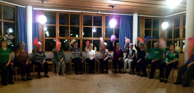 TL Anneliese Zumtobel eröffnet den Nachmittag mit Tanz im Sitzen.